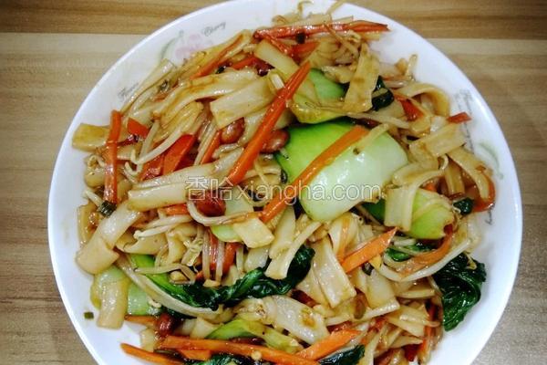 7868浏览 / 8收藏 健康功效 酱油:活血化瘀 食材用料 河粉 适量 豆芽 适量 豆酱 适量 盐 适量 生抽 适量 素炒河粉的做法1.河粉洗净,沥干水分备好2.胡萝卜切丝、豆芽、小白菜洗净,青椒切丁,干辣椒,大蒜切末。备好3.锅内热油,放入步骤2翻炒,倒入生抽、酱油、豆酱调味。4.配菜7分熟后倒入河粉、少量生抽、酱油调味。翻炒,盛盘。 本菜谱由上传...