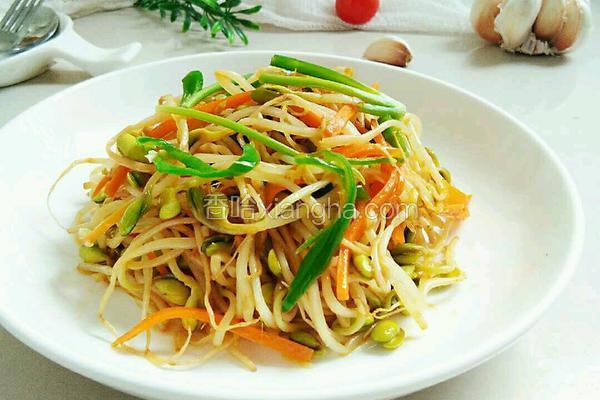 211707浏览 / 518收藏 健康功效 黄豆芽:活血化瘀 胡萝卜:活血化瘀 食材用料 盐 适量 鸡粉 少许 清水 适量 生抽 少许 素炒豆芽的做法1.豆芽清洗干净沥干水,2.胡萝卜,青椒,姜切丝,蒜切末,3.起油锅,放入姜丝炒香,4.加入豆芽菜爆炒,5.加入胡萝卜丝炒半分钟,6.加入一点点清水,盖上盖子煮二分钟,7.加入蒜末青椒,盐,生抽,炒匀,8.最后加点鸡粉炒均匀关火装盘。9.成品图。10.成品图。 本菜谱由上传...