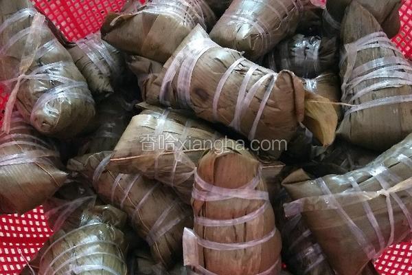 570434浏览 / 485收藏 健康功效 糯米:活血化瘀 五花肉:润燥 食材用料 咸蛋 5个 粽子的做法1.用开水烫5分钟,捞出将粽叶清洗干净备用2.糯米,红豆,花生提前用水泡3小时,然后沥干水加适量盐油备用3.五花肉切块加适量盐油五香粉老抽备用,咸蛋煮熟切块,腊肠切块4.美味的粽子包好啦,将粽子放进大锅里,加热水泡过粽子全部,大火煮开转小火慢慢煮3小时(时间和粽子大小有关)5.好啦,粽子捞出锅放至微凉可以吃 本菜谱由上传...
