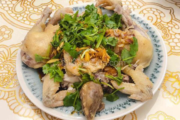 216405浏览 / 70收藏 健康功效 姜:散寒解表 香菜:活血化瘀 食材用料 三黄鸡 一只 红葱头 适量 盐 适量 味极鲜 适量 粤式红葱头淋鸡的做法1.鸡洗干净后,身上抹盐。2.鸡肚塞入姜片葱结。3.放入高压锅,放100毫升水,对,就一点点就行了。4.按超快煮饭键即可,煮好后,先不开盖,焖十分钟。5.拿筷子插入鸡腿,那里肉最厚,轻松插入,流出鸡汁,没血水即可。6.把姜切丝,红葱头切碎,香菜切碎。备用。7.鸡砍件,原谅我刀工一般,但绝对不影响美味。味道是不打折的。。。。。8.锅内热油,淋入味极鲜马上关火。9.把汁趁还滋滋响时淋入配菜中。10.把配菜淋上鸡即可。11.开吃了。 小贴士我...