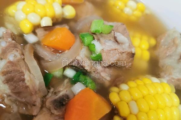 11674浏览 / 27收藏 健康功效 排骨:润燥 洋葱:活血化瘀 胡萝卜:活血化瘀 食材用料 盐 适量 玉米排骨汤的做法1.胡萝卜削皮,洗净切小块 玉米洗净切小块 洋葱切片 (洋葱可有可无)2.排骨洗净,切块,下入锅中焯水,撇去血沫3.把排骨块、胡萝卜块、玉米块、红枣,一起放进电饭锅里,加水,按精煮键开始(红枣要去核)4.煮好后,加盐和葱,就可以出锅啦! 本菜谱由上传...