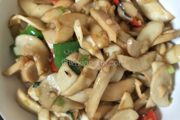 6806浏览 / 12收藏 健康功效 杏鲍菇:活血化瘀 食材用料 生抽 适量 火腿或鸡肉肠 一根 鸡粉 适量 盐 少许 爆香杏鲍菇的做法1.准备好葱,蒜,姜,跟青椒,红椒,备用。2.洗好杏鲍菇备用3.用开水焯一下,捞出备用4.热锅凉油起锅,放入葱,蒜,姜炒香,放入火腿肠或鸡肉肠(忘记给切好的鸡肉肠照相)炒片刻,放入红椒,青椒,最后放入焯好的杏鲍菇继续翻炒,加入适量生抽,鸡粉,少许盐,出锅装盘。 本菜谱由上传...