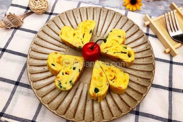 78218浏览 / 116收藏 健康功效 鸡蛋:润燥 胡萝卜:活血化瘀 食材用料 葱花 适量 盐 少许 马苏里拉芝士 适量 爱心玉子烧的做法1.鸡蛋磕入碗里打散。2.胡萝卜和葱花切好。3.把胡萝卜末放入鸡蛋中,再加入少许的盐搅拌均匀。4.锅烧热,刷上一层油。5.倒入适量的蛋液,用小火加热让蛋液慢慢凝固。6.蛋液凝固时,用铲子掀起下角的边沿往上方慢慢的卷起。7.再倒入蛋液,晃动锅子让蛋液和刚刚卷好的蛋卷粘合。8.再撒上葱花和芝士,继续小火煎至凝固。重复2-3次这个步骤,直到蛋液用完。9.卷好后,关火,利用锅里的余温,让玉子烧整个定型好。10.用刀切成1厘米宽的厚片。11.如图在玉子烧上斜切...