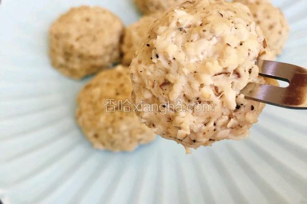 6683浏览 / 14收藏 健康功效 香菇:活血化瘀 燕麦:止血 食材用料 猪肉馅 80克 燕麦蒸肉丸的做法1.材料2.香菇洗净焯水3.剁碎4.肉馅中加入少许宝宝酱油5.再加入淀粉和生姜6.搅拌均匀腌制半小时(腌好后挑出生姜)7.即食燕麦用水泡五分钟8.腌好的肉馅中加入燕麦和香菇9.再加入适量牡蛎黑芝麻粉补锌提鲜10.搅拌均匀11.用手团成团放入盘中12.放入锅中,大火蒸15分钟即可13.完成 本菜谱由上传...