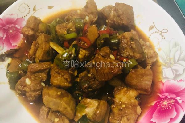 19589浏览 / 42收藏 食材用料 小排 两根 小米椒 4个 葱段 少许 姜和大蒜 少许 盐 5克 生抽 10克 老抽 6克 爆炒排骨的做法1.将辅料切好备用2.将洗净的小排放入生抽,酱油,盐和葱段腌制用保鲜膜包裹起来。3.放置冰箱冷藏半小时后取出4.热油爆炒大蒜葱5.放入排骨翻炒均匀6.适当加入少许酱油上色7.加入温水中大火小煮8.倒入备用的辅料辣椒等翻炒收汁。9.摆盘。 小贴士腌制的时候一定要用料均衡可以去腥入味哦 本菜谱由上传...