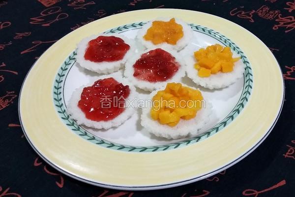 36324浏览 / 199收藏 食材用料 大米粉 200克 豆沙馅 适量 草莓酱 适量 芒果(芒果酱)等 适量 牛奶(水) 适量 熟梨糕(天津特色小吃)的做法1.大米粉、糯米粉、白糖,加少量牛奶搅拌成颗粒状。2.用手搓散。3.过筛。4.模具刷油。5.过筛后的面粉放入模具。6.轻轻刮平。7.冷水蒸锅蒸15分钟。8.倒扣,抹喜欢的果酱。9.漂亮好吃的熟梨糕。 小贴士特别注意面粉的干湿度,不要加多水。如果太干,可以用喷壶喷一点点水。过筛后的面粉不要用力按压,用勺子轻轻装满模具就可以。这样口感才松软好吃。 本菜谱由上传...