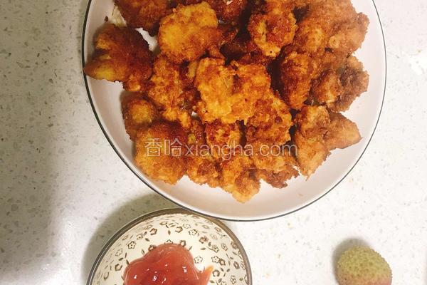 4515浏览 / 13收藏 健康功效 鸡腿:富含烟酸 番茄酱:活血化瘀 食材用料 盐 酌情 面包糠 一盘 十三香 少量 炸鸡块的做法1.鸡腿 洗净 去皮 切小块。 切小块之后 加入料酒和盐 腌制半小时备用。2.打散一个鸡蛋放入碗中;倒入面包糠 和面粉。3.将鸡块 一次粘裹面粉 鸡蛋液 面包糠 放盘中备用。4.起锅 加油 油热 加入鸡块 炸至两面金黄盛入漏勺 沥油 5.配上美味的番茄酱 好吃酥脆娇嫩的鸡块就做好啦~ 小贴士一个鸡腿 可正好两次煎炸 若鸡块大小不均匀可大块一锅 小块一锅 这样熟的比较均匀 尝试做起来吧~ 本菜谱由上传...