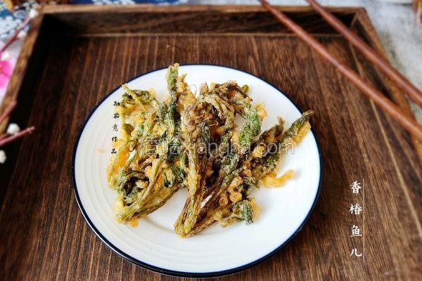 12932浏览 / 82收藏 健康功效 香椿:活血化瘀 鸡蛋:润燥 食材用料 盐 少许 炸香椿鱼的做法1.准备好香椿择洗干净,后面硬的地方给去掉。2.洗净后投入开水锅中焯水,记得加一勺食盐。3.一分钟焯水后,凉水拔凉。4.两颗鸡蛋入碗搅散。5.放入控干水分的香椿6.锅里油烧热,香椿裹蛋糊直接放在油锅里炸透。7.炸到定型后转大火炸至金黄酥脆捞出。8.控油即可食用!热吃酥脆啊! 小贴士①香椿中含有亚*盐。再凉拌或者炒食,炸制之前要焯一下水。②这款香椿炸出来热吃比较脆嫩。放凉,可能就会变软。所以趁热更好吃。 本菜谱由上传...