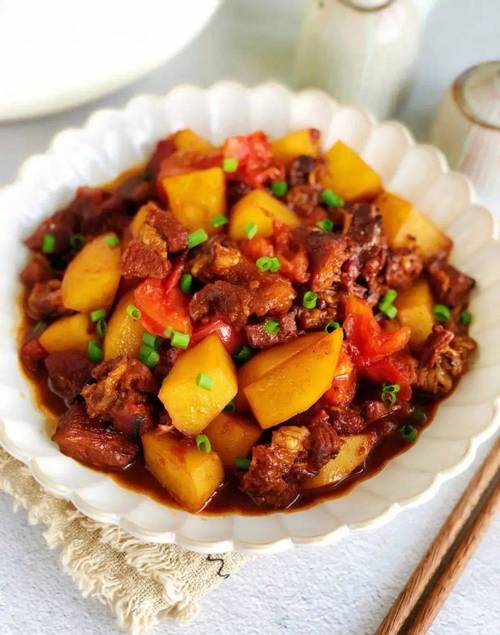 红烧排骨土豆 墨湮丶含含收藏红烧排骨土豆的做法说明本来是想做红烧鸡翅的,结果后来化完才发现是排骨。那就变成红烧排骨再放里土豆(图片来源网络,侵删)红烧排骨土豆的食材和调料排骨300克土豆1个八角1个料酒2勺红烧排骨土豆的做法与步骤第1步.将排骨打水焯,里面还放了点昨晚火锅的鸡。第2步.土豆去皮,切滚刀块,放水里泡,去淀粉第3步.倒油,葱姜蒜,花椒大料,4块冰糖第4步.将排骨倒入,翻炒,第5步.将泡好的土豆捞出,一起翻炒。第6步.倒入料酒,生抽,老抽,翻炒,上色第7步.倒入热水,画重点。热水。和排骨平行即可。大火烧开,转中火炖第8步.盖盖子。把汤熬剩一点点第9步.最后大火收汁,放盐,胡椒粉。一...