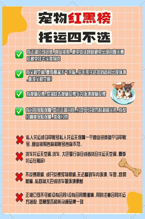 宠物托运服务选择,安全与专业是关键!面对日益增长的宠物出行需求,如何挑选一家安全、专业的宠物托运服务商,成为了众多宠物主人的心头大事。本文将深入剖析宠物托运行业现状,从安全保障措施、专业服务流程、资质认证、用户口碑等多个维度,为您提供全方位的宠物托运服务选择指南,助您找到最合适的宠物托运伙伴,确保爱宠旅途无忧。(图片来源网络,侵删) 随着生活水平的提高,宠物已经成为许多家庭的重要成员。无论是搬家、旅游还是其他原因,宠物主人们经常需要将爱宠托运到异地。然而,宠物托运不同于普通货物运输,它涉及到动物福利、安全保障等诸多问题,因此选择一家安全、专业的宠物托运服务商至关重要。一家好的宠物托运公司不仅能...