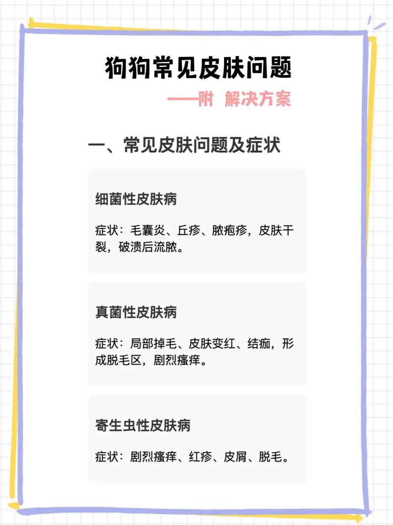 宠物狗是人类忠实的朋友,为我们的生活带来了无尽的欢乐。然而,与所有生物一样,它们也会面临各种健康问题,其中皮肤问题尤为常见,且容易反复发作,给狗狗带来痛苦,也让主人倍感焦虑。作为一名资深的宠物行业从业者,我深知皮肤问题对狗狗生活质量的影响,也积累了丰富的经验,因此,我将从专业的角度,深入探讨如何帮助宠物狗应对这些常见的皮肤问题,希望能为各位主人提供有价值的参考。(图片来源网络,侵删) 首先,我们要明确一个核心观点:皮肤问题并非孤立存在,它往往是狗狗整体健康状况的反映。因此,解决皮肤问题不能仅仅停留在表面治疗,更需要关注狗狗的内在健康,从根本上提升它们的抵抗力。 常见的宠物狗皮肤问题种类繁多,大...