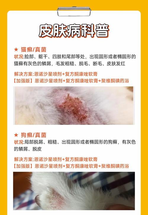 长癣通常是因为真菌感染导致的,这种情况需要使用抗真菌药物进行治疗。狗狗真菌性皮肤病通常可以使用含有盐酸特比萘芬、酮康唑、伊曲康唑等成分的药物治疗,这些都是对抗真菌的药物。如果狗狗身上多处长癣,建议对其进行药浴治疗,同时配合服用抗真菌药物、补充鱼油等措施一起进行,期间要注意保持狗狗患处的干燥、生活环境的卫生整洁。(图片来源网络,侵删)...