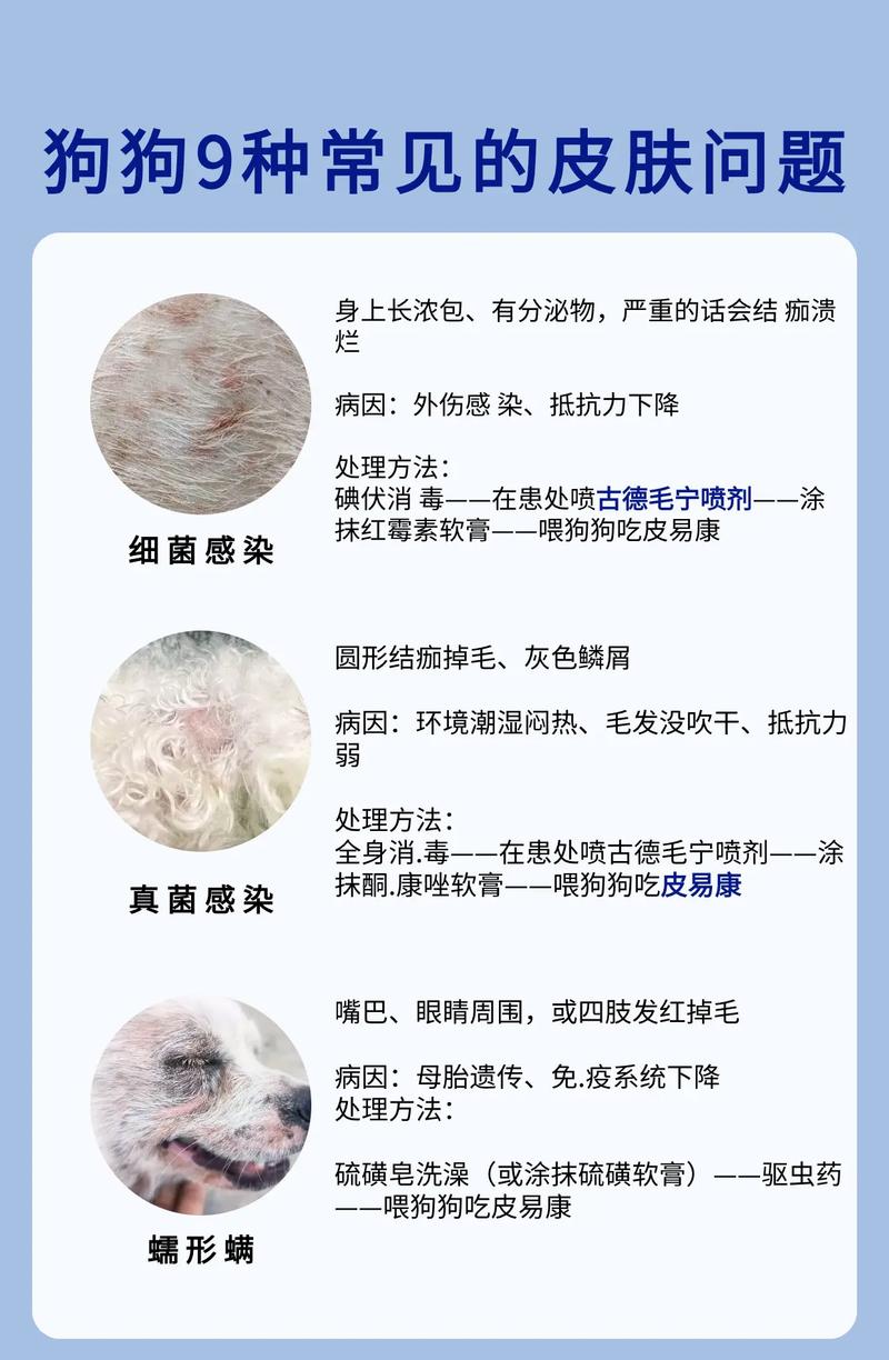 由于的皮肤病类型众多,应当先确定狗狗患有什么类型的皮肤病,再使用对应的药物治疗。以下是几种狗狗常见的皮肤病用了有比较好效果的药物成分:如果是跳蚤、蜱虫、虱子等体外寄生虫引起的皮肤病,则使用含有非泼罗尼、吡虫啉莫昔克丁、塞拉菌素等成分的体外药物。如果是疥螨、蠕形螨等引起的,使用含有伊维菌素、氟雷拉纳等成分的外驱药物比较有效果。如果是真菌感染引起的,使用含有伊曲康唑、酮康唑等成分的药物。(图片来源网络,侵删)...
