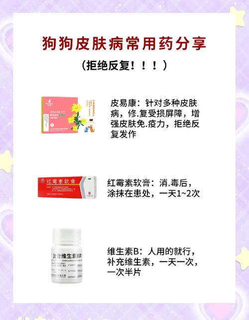 关于皮肤病,可以适量补充维生素B族元素。(图片来源网络,侵删) 比如维生素B2可以辅助治疗狗狗真菌感染、毛发粗糙、口角炎、口臭; 维生素B3可以辅助治疗狗狗的皮炎; 维生素B6可以针对脂溢性皮炎、皮肤泛红、起皮屑以及对关节炎也有辅助恢复作用。 总的来说,适量补充维生素B族元素有助于提高狗狗皮肤病的免疫力,帮助修复屏障。但维生素只起到预防辅助治疗作用,不能代替药物。如果如果狗狗已经得了皮肤病,建议及时用药治疗。...