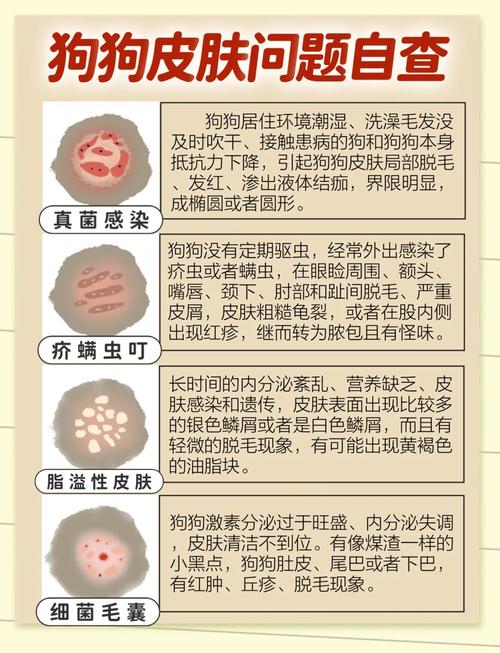 得皮肤病的原因很多,可能与环境、、基因、免疫系统、体外寄生虫等多个因素有关。如果狗狗生活在潮湿、脏乱的环境当中,就容易会感染细菌、真菌和跳蚤、螨虫等,从而引起皮肤病。其次,狗狗营养不良会导致免疫力较差,或不小心直接接触到感染源或患病,也有可能会因此感染皮肤病。最后,狗狗体内出现过度活跃的免疫反应或者患有自身免疫性时,也会引起皮肤病。如果狗狗出现皮肤问题,应当及时就医,找到病因后做针对性治疗。(图片来源网络,侵删)...