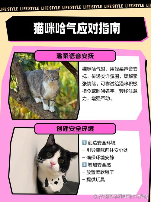 当哈气时,首先要确定猫咪哈气的原因,然后对其进行适当的安抚,避免猫咪一直哈气而受到应激。首先,主人可以给猫咪喂食一些小零食或用玩具逗弄猫咪,通过这种方式转移一下它的注意力。其次,如果猫咪是因为受到惊吓而哈气,宠主需要及时让猫咪远离害怕的物体或,并把猫咪抱在怀里,轻轻抚摸它的头部和背部,并用温柔和轻声的语气安抚它的情绪。最后,如果哈气时,猫咪还出现炸毛、抓人或咬人等攻击性行为,最好是让猫咪自己冷静一会,不要贸然的靠近猫咪,避免导致受伤。(图片来源网络,侵删)...