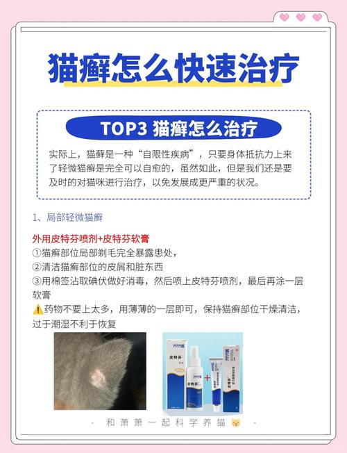 猫癣是由真菌感染引起的皮肤病,最常见的罪魁祸首是犬小孢子菌,所以治疗猫癣必须要用到针对真菌感染的药物,比如盐酸特比萘芬喷剂、复方酮康唑软膏、克霉唑软膏等。如果感染比较严重,单纯使用外用药物通常很难达到理想的治疗效果,所以需要配合口服伊曲康唑。另外,感染猫癣可能是和免疫力不足有关,所以宠主也要给猫咪补充一些维生素、卵磷脂、不饱和脂肪酸OMEGA-3和OMEGA-6,促进皮肤修复。治疗期间注意给猫咪佩戴伊丽莎白圈,同时注意环境卫生,定期给猫窝、室内地板、猫砂盆、地毯等猫咪接触过的物品消毒。(图片来源网络,侵删)...