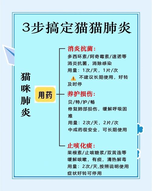 引起支气管炎的病因有很多,建议最好是带去医院检查并针对症状给兽用抗炎药、类固醇、镇咳以及气管扩张类药物,给药方式包含口服、打针、输液或雾化,其中使用对症药物进行雾化效果更好,这可以扩张支气管和湿化鼻道。自己给口服药可以使用阿莫西林克拉维酸钾、氨茶碱、盐酸多西环素等成分的药物,若用药治疗一周后猫咪还是不见好转,建议带去医院做呼吸道PCR五联检测、拍胸片以及气管分泌物检测等,久治不好的在有条件情况下进一步排查过敏源。(图片来源网络,侵删)...