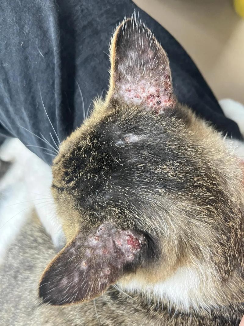 若是不确定皮肤病的具体情况,只是怀疑猫咪患有皮肤病,说明皮肤处是有伤口的,建议您仔细将猫咪患病处的毛发剃干净,需要将剃毛区域扩大,这样方便上药和避免伤口进一步扩散。在不清楚具体病因的情况下,一定要给猫咪戴好伊丽莎白圈,这样是为了防止猫咪再去抓挠患处导致感染,并使用碘伏进行消毒处理。之后尽快带猫咪去医院进行皮检,确定皮肤病类型后再对症治疗,切记不可盲目使用人用药进行治疗。(图片来源网络,侵删)  ...