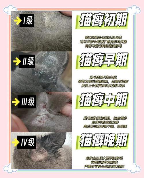 感染猫藓后,首先,第一时间要隔离饲养,做好每天的和消毒工作。其次可以把病灶处的毛发剃开,结痂处用碘伏涂抹进行软化消毒,去除皮屑后再去涂抹含盐酸特比萘芬和酮康唑成分的外用药物进行治疗。宠主还需要给猫咪戴好伊丽莎白圈,防止猫咪抓挠让猫藓扩散,并且建议日常口服维生素b族提高皮肤免疫力。(图片来源网络,侵删)...