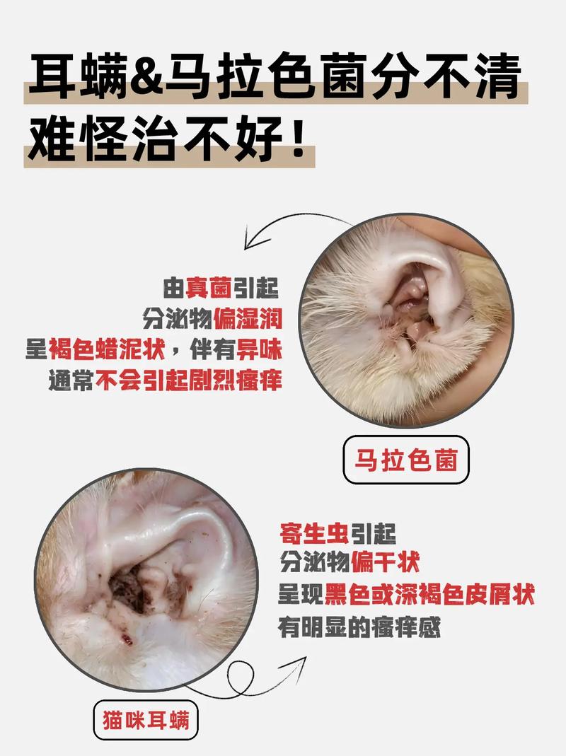 如果是耳道的马拉色菌可以用一些洗耳液和杀菌的耳药,先溶解掉猫咪耳朵里的耳垢再上耳药,坚持用药7-10天左右,如果猫咪还是不见好转,建议带去附近医院就诊,做耳道的分泌物检查,判断耳道内情况,然后进行针对性治疗;如果是皮肤上感染马拉色菌可以使用酮康唑、克霉唑等抗真菌药膏,严重时配合口服伊曲康唑、灰黄霉素等抗真菌药物,治疗期间需要给猫咪戴好伊丽莎白圈,避免猫咪因瘙痒抓挠患处。(图片来源网络,侵删)...