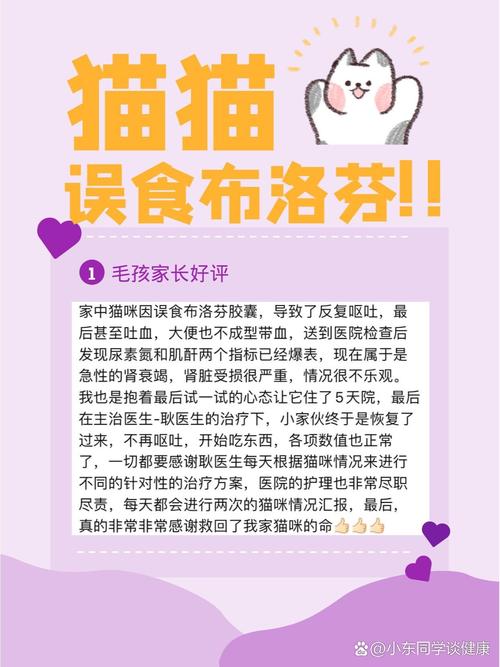 是不能吃布洛芬的,有可能只喂食一片都会导致猫咪布洛芬中毒,因为布洛芬这种药物对猫咪的胃部粘膜刺激很大,很容易造成胃溃疡、胃出血甚至胃穿孔等病理变化。当猫吃了过量布洛芬,轻微的可能会出现呕吐、食欲不振、精神萎靡的症状,严重的可能会在出现精神沉郁、剧烈呕吐、口吐鲜血、机体震颤、黄疸等中毒症状后几个小时内死亡。如果发现猫咪食入布洛芬,主人应立即带它去医院,让医护人员对其进行催吐和其他对症治疗。(图片来源网络,侵删)...