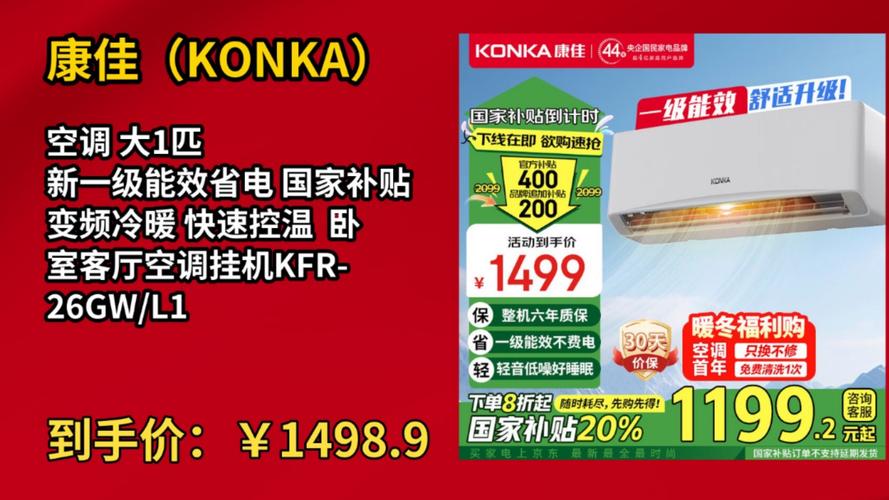 租房党捡到宝了!康佳1匹空调千元价位中的王炸(图片来源网络,侵删)   在空调市场竞争白热化的今天,千元价位段终于杀出一匹黑马——康佳(KONKA)新一级能效变频空调。这款定价仅1299元的1匹挂机,不仅拥有5.27超高APF值,更实现了30秒急速制冷的黑科技,特别适合预算有限却不愿妥协性能的小户型家庭。  对于10-16㎡卧室用户来说,这款空调堪称量身定制。其30秒速冷技术能让午休族躺下即享清凉,60秒速热则让南方没有暖气的家庭冬季洗澡不再煎熬。实测在15㎡房间内,开机5分钟就能从35℃降至26℃,这个表现甚至超越不少两千元档机型。租房党尤其要注意,以旧换新后千元出...