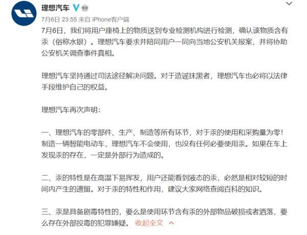 【IT时代网深圳报道】7月20日晚间,理想车主“正义谦叔”发微博称,今天去理想交付中心,拆了主驾座椅,在工作人员众目睽睽围观下,发现主驾也有水银,而且是包裹在无孔的真皮下方,这个拆开都难,后期投撒更是不可能。   对此,理想汽车座椅供应商佛吉亚在微博上回应称,在理想ONE座椅的研发及生产过程中,严格遵守国家对于汽车禁用物质的相关标准。   声明还称,在负责理想ONE座椅的整椅装配工厂、座椅骨架制造工厂、面套裁剪和缝纫工厂,在整个生产过程中均不涉及使用汞元素。【责任编辑/常青】   以下为声明全文:   近日,针对网上理相汽车的理想ONE座椅出现水银一事,作为座椅供应...