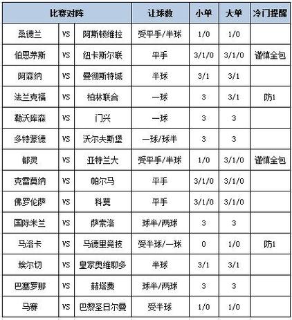 动态提点:   1、诺丁汉森林VS西汉姆联:诺丁汉前2场一共打入4球,攻势不错;西汉姆处于3连败中,球队整体发挥还是比较比较糟糕的。   2、布赖顿VS曼彻斯特城:布莱顿本赛季联赛未尝一胜,前2轮发挥欠佳;曼城上场遭遇完败,本场还是有反弹的战意。   3、利物浦VS阿森纳:利物浦前2场丢球较多,防守端发挥不足;阿森纳前2场都是零封获胜,本赛季攻守两端的质量不错。   4、阿斯顿维拉VS水晶宫:维拉本赛季目前没有进球,进攻端发挥不足;水晶宫近期赛程比较密集,体能或略处下风。   5、沃尔夫斯堡VS美因茨:沃尔夫斯堡上场取得开门红,此役主场气势旺盛;美因茨上场取得...