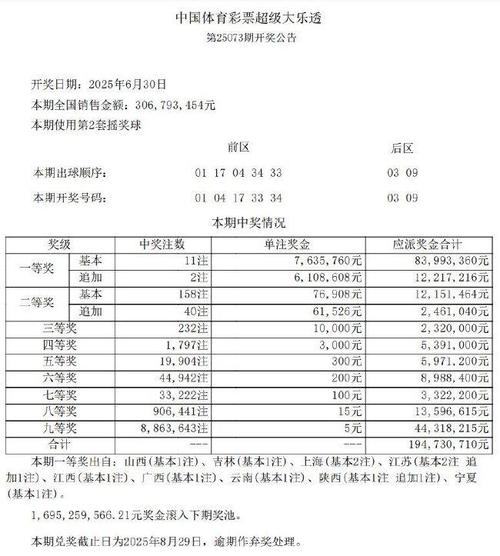 • 大乐透头奖4注1000万分落3地 奖池余额11.8亿元