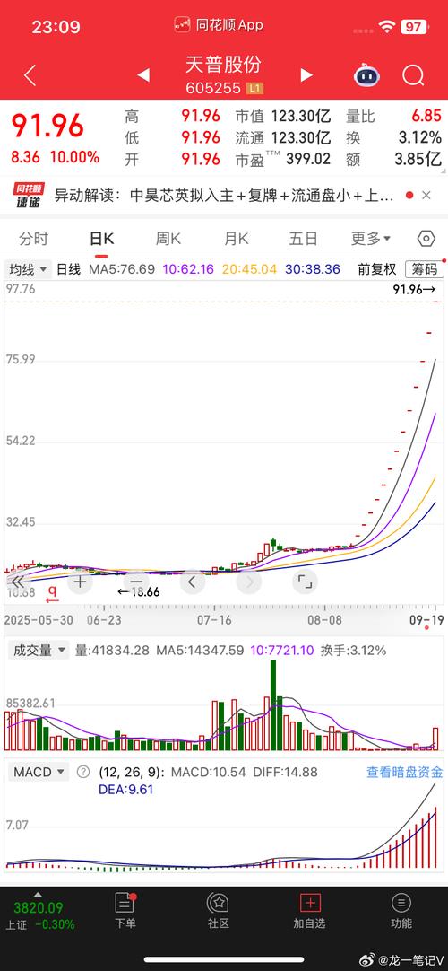 炒股就看金麒麟分析师研报,权威,专业,及时,全面,助您挖掘潜力主题机会!   9月18日,宁波市天普橡胶科技股份有限公司(605255.SH,以下简称“”)复牌再度一字涨停,走出12连板。截至当天午间收盘,天普股份收涨10%,报收83.6元/股,封单金额高达7.4亿元。从8月22日的收盘价29.3元/股算起,股价涨幅高达185.3%。   9月17日晚,天普股份发关于股票交易停牌核查结果暨复牌的公告称,公司股票自2025年8月22日至9月10日连续11个交易日涨停,短期涨幅与同期上证指数、汽车零部件行业指数存在严重偏离。经公司自查,截至公告日,收购方中昊芯英无资产注入计划,中昊...