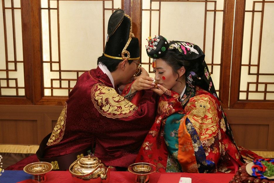在过去,朝鲜族婚俗沿用中国古代的六礼习俗,非常传统复杂,礼仪繁多。现如今朝鲜族人民的婚俗虽然受到时代变迁的影响,进行了一定的简化,但是整体流程和习俗仍保留了朝鲜族特有的特点。从婚前、结婚到婚后都有着特定的程式,主要有纳彩、纳币和迎亲3个程序,在这些程序中又贯穿着多种礼仪。