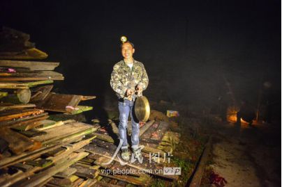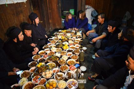 一般要到快过春节的时候,男方家才专门请人去接女方来洗糯米、打糍粑,新娘方能在夫家住上一夜;在来年农忙时节,又接女方来帮忙,夜里仍不能在男方家留宿,帮完忙当晚即回去,只有待到女方有身孕后,新娘才到夫家长住。图为11月16日夜,新娘潘芝银家为准备婚礼,灯火彻夜长明。