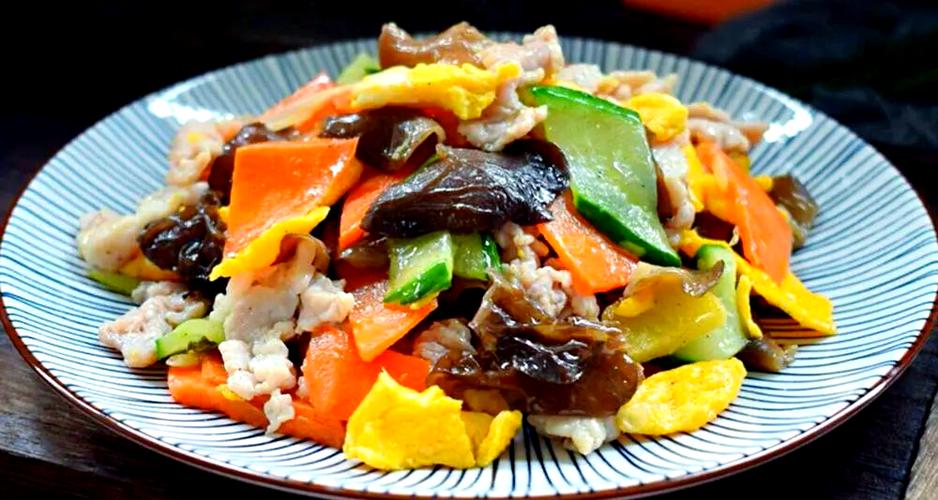 认真吃饭的七仔收藏木须肉的做法说明上学时候去食堂吃饭经常喜欢点木须肉,觉得里面有菜有肉有蛋营养一下就齐全了。后来自己尝试做了发现其实超简单的,而且从第一次做就很成功,做法很家常,但是真的好吃营养又下饭。附切菜小技巧。(图片来源网络,侵删)木须肉的食材和调料里脊肉200克胡萝卜1根(小)黄瓜1根木耳8-9朵鸡蛋2个小葱1根蒜3瓣盐1小勺蚝油1勺生抽1勺生粉1勺料酒1勺木须肉的做法与步骤第1步.首先把里脊肉切片,加一勺淀粉一勺料酒腌制10-20分钟,腌制肉的过程可以把蔬菜洗干净,黄瓜、胡萝卜切成菱形片,木耳泡发,葱和蒜切成末,鸡蛋加小半勺盐打散。(黄瓜和胡萝卜切菱形片的方法:斜着把黄瓜、...