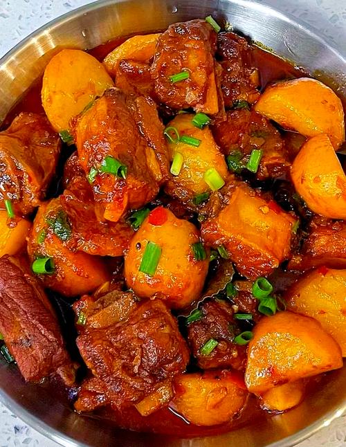 寻找桃花岛收藏土豆洋葱烧排骨的做法说明和普通的土豆烧排骨相比,加点儿洋葱,不但去腥解腻,补钙,排骨也更鲜嫩,非常好吃。(图片来源网络,侵删)土豆洋葱烧排骨的食材和调料排骨2斤土豆1个洋葱半个胡萝卜少许葱姜蒜少许料酒半勺生抽1勺老抽1勺白糖2勺八角2个桂皮少许植物油2勺盐3勺土豆洋葱烧排骨的做法与步骤第1步.排骨洗净,泡去血水,切成条第2步.入冷水中,加热煮沸第3步.将排骨捞出,沥净水分,冲洗一下第4步.准备好其他材料第5步.热锅热油,倒入葱蒜/洋葱和八角爆香第6步.下排骨,炒净表面水分第7步.加适量水或高汤,盐,糖,料酒,生抽,老抽,拌匀,大火烧开后撇去浮沫,盖上锅盖炖30分...