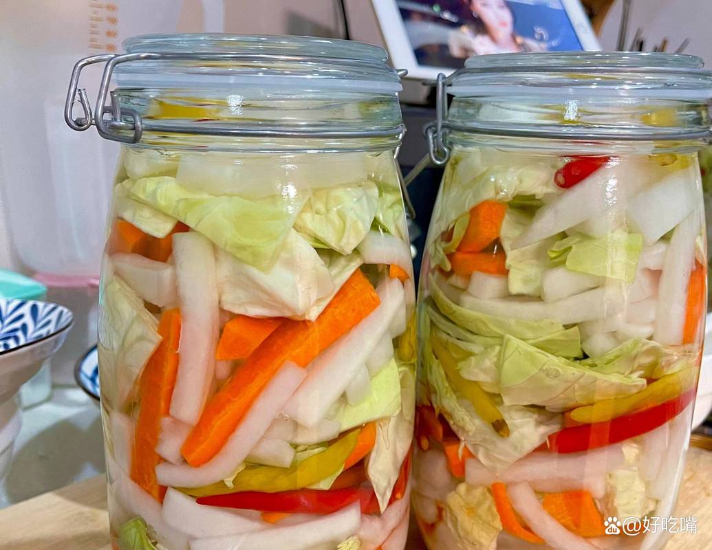 方便面靠边站收藏下饭泡菜的做法说明陕南特色泡菜,下饭神器,酸辣可口,百吃不厌,今天教大家如何腌制一坛美味的泡菜。(图片来源网络,侵删)下饭泡菜的食材和调料盐三勺姜5大片花椒一把红干辣椒一把白酒2两大料2个八角5个香叶3片包菜一颗下饭泡菜的做法与步骤第1步.花椒,辣椒,大料,八角用清水洗干净,倒进一个干净的玻璃坛中,撒一勺盐。第2步.这种坛子最好,一般大包菜放一个,小包菜放两个刚好,可以放胡萝卜,豇豆等等。第3步.将包菜去掉最外面的老皮,洗干净,顺着菜帮切成小块,依次放入坛子中。第4步.就是切成这种样子,泡好后容易取出,不会散开成一片一片的。第5步.包菜全部放入后加清水,没过最上面的...