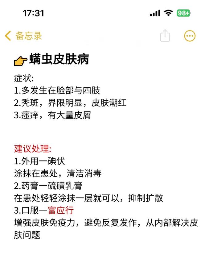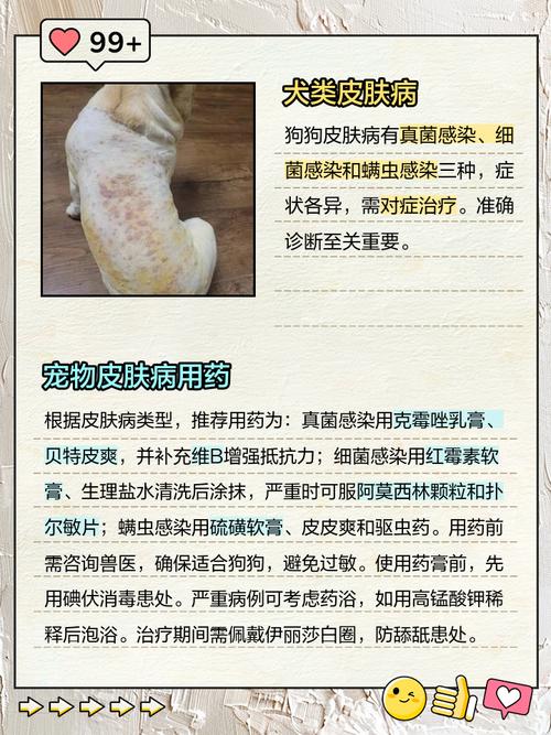 得了螨虫皮肤病应采用以下方法进行治疗:(图片来源网络,侵删) 第一,使用含塞拉菌素、氟雷拉纳等成分的体外药物来驱杀螨虫,并在患病处涂抹消炎药物。 第二,如果螨虫感染范围较大建议剃除狗狗患处的毛发,进行药浴治疗。 第三,治疗期间注意补充复合维生素B,可以帮助狗狗皮肤恢复,提高抵抗力。 第四、注意狗狗生活环境的消毒、定期给狗狗驱虫。 最后,狗狗皮肤病是一个长久战,千万别因为有好转就自行停药,一定要在兽医师的指导下,坚持用药治疗和保持良好的生活环境。...