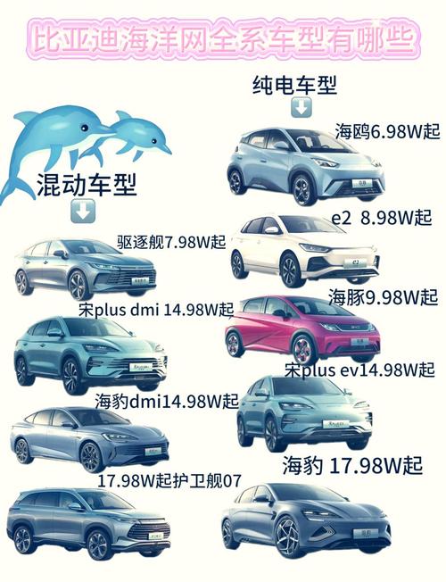 搭载e平台3.0最新技术的纯电海洋生物系列,以及搭载DM-i超级混动技术的军舰系列,这样的产品序列组合,可以满足更多消费者的用车需求,目前在售车型有“海豹、驱逐舰05、海豚”等几大车系。(图片来源网络,侵删)...