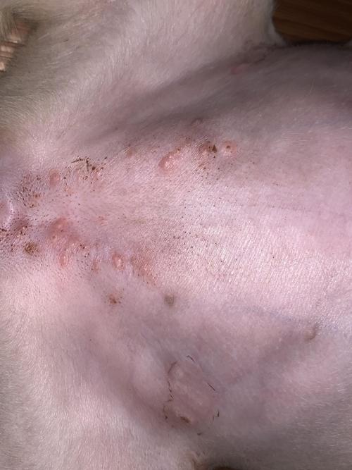 如果肚皮上的黑斑很光滑,没有结痂、起皮屑和发红的症状,那么肚皮上的黑斑一般是正常的皮肤胎记,而不是所谓的皮肤病,有很多品种狗狗的身上都会出现黑斑,大多数是片状和点状的,它属于基因遗传下来的,其实每一个狗狗的身体里面都有黑色素,它能够保持狗狗的正常皮肤颜色以及毛发颜色,甚至是导致狗狗肚皮出现不规则的斑点,狗狗肚皮上的黑斑也就是黑色素过度沉积导致的有色胎记。但是如果这个黑斑有异常的结痂、增厚现象,则很可能是皮肤病或是毛囊损伤导致的。(图片来源网络,侵删)...