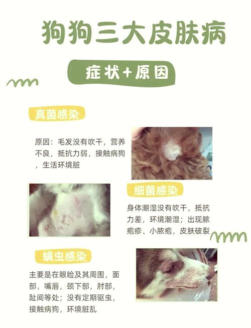 得皮肤病需要及时治疗,否则它的皮肤问题可能会逐渐加重,如果有瘙痒症状,可能会影响狗狗的睡眠质量和食欲。其次,患处皮肤破溃之后,可能会导致一些并发症,比如真皮层损伤、毛囊坏死、大面积脱毛等。最后,某些皮肤病具有传染性,可能会传染给其他犬只、甚至是主人。因此,如果主人发现狗狗感染了皮肤病,建议及时带它去宠物医院做皮肤刮片检查,确定皮肤病类型并及时给予治疗。(图片来源网络,侵删)...