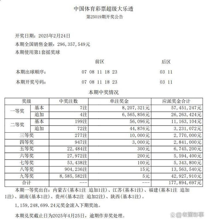 22:06 本期一等奖开出3注,单注奖金968万余元分落3地,福建、江西和广东各擒1注。二等奖开出105注,单注奖金16.7万余...
