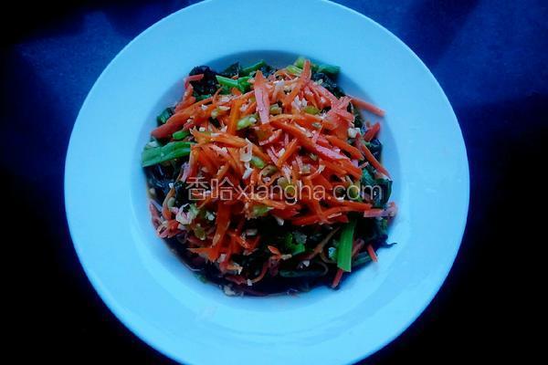 16247浏览 / 57收藏 健康功效 菠菜:平肝 腐竹:抗氧化、抗癌防癌、促进生育 花椒:补血、护齿、保护骨骼 食材用料 盐 3克 炝拌腐竹菠菜的做法1.准备好食材,菠菜摘去老叶清洗干净。2.腐竹切段。(我用的是新鲜腐竹,如果是干腐竹需要提前泡发。)3.锅内烧水,水开后下入腐竹焯水一分钟,捞出备用。4.锅内再次烧水,水开后加入少许盐,放入菠菜焯水两分钟。5.焯水的菠菜捞出过凉水。6.菠菜攥干水分切断。7.大蒜切成蒜末备用。8.锅内烧油,下入花椒炸至微焦,将花椒捞出不用。9.把菠菜和腐竹放入容器内,加入蒜末。10.倒入花椒油,加入盐,香油,米醋,白糖,蚝油搅拌均匀。11.装盘就可以慢慢享...