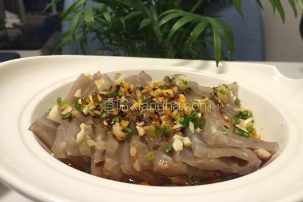 112725浏览 / 73收藏 健康功效 猪皮:利咽 八角:理气、止痛、散寒 食材用料 盐 2匙 鸡精 1匙 生抽 2匙 老抽 1/3匙 猪皮花生冻的做法1.将猪皮清洗干净,2.锅内放入适量清水,将猪皮放入锅内,中火加热。3.水开后,撇去浮沫,煮十分钟即可。4.将猪皮捞出并清洗干净。5.将猪皮全部检查一遍,用小镊子去除残留猪毛。6.将猪皮上残留的猪肉用刀去除干净。7.全部去除干净后清洗一遍装盘。8.将猪皮切成0.3厘米宽的长条。9.将猪皮全部切好装盘。10.锅内放入适量清水,将猪皮全部倒入锅内,中火加热。11.加入一匙盐,两颗八角,继续煮。12.水开后转小火,将汤煮至浓稠泛白,13.将提...