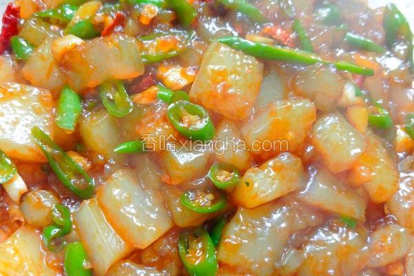 87993浏览 / 104收藏 健康功效 白糖:活血化瘀 食材用料 白凉粉 250克 刮刀 1个 盐 1.5克 生抽 10克 陈醋 5克 蒜、姜水 两勺 花椒水 两勺 辣出汗 半勺 凉粉的做法1.准备食材,工具2.用刮刀刮出凉粉丝,装入盘中3.加盐4.白糖5.蒜、姜水6.花椒水7.生抽8.陈醋9.辣出汗10.麻油,所有调料加入拌匀即可食用,喜欢的可以撒上白芝麻和葱花,增加香味与色彩11.美图一张,秀一秀 小贴士辣出汗特别辣,记着千万不可以放多,喜欢偏甜的还可以增加少许白糖 本菜谱由上传...