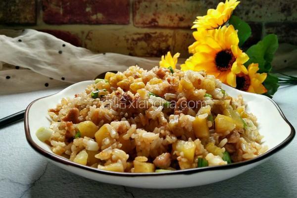 90849浏览 / 162收藏 健康功效 菠萝:活血化瘀 米饭:活血化瘀 豌豆粒:增强免疫力、抗氧化、护眼明目 食材用料 玉米粒 100克 盐 适量 干虾仁 适量 菠萝炒饭的做法1.准备一个菠萝对半切开,这样可以做两份。2.用刀将菠萝的四边划开成长方形,中间再划小块。3.用勺子挖出菠萝肉,让菠萝变成空的菠萝船。4.取菠萝肉切小块,放入盐水内浸泡备用。5.豌豆粒,玉米粒放入热水中焯一分钟,沥干水分。6.胡萝卜去皮,切成丝,装盘备用。7.锅中放适量食用油。烧至五成热,放入干虾仁。8.再放入玉米粒,胡萝卜丝,豌豆翻炒,再下盐,炒出香味。9.放入隔夜饭,翻炒均匀。10.关火,放入泡好盐水的菠萝肉...