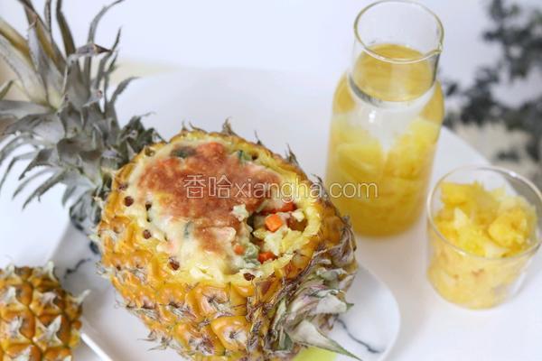 4854浏览 / 12收藏 健康功效 青豆:润燥 胡萝卜:活血化瘀 虾:增强免疫力、抗氧化、护眼明目 食材用料 菠箩 15 瘦肉 5斤 红色甜辣椒 2个 盐 适量 鸡精 小许 菠萝饭的做法1.选择新鲜的菠萝,不要熟透那种,会特别甜,口感没有那么好的2.菠萝切半分开,用小刀田字分隔3.用勺子挖菠萝肉出来,备用4.青豆,清洗,用热水烫半熟备用5.瘦肉,切丁,适量放盐,酱油腌好备用,不要放太咸6.胡萝卜切丁,腊肠切丁,备用7.1.瘦肉,大火放肉开炒,焖熟。装好备用8.2.将胡萝卜,青豆,腊肠,全放锅大火炒3分钟放盐,适量鸡精炒2分钟后,加大米,加适量的酱油,再炒10分钟,放红辣椒炒1分钟,再放...
